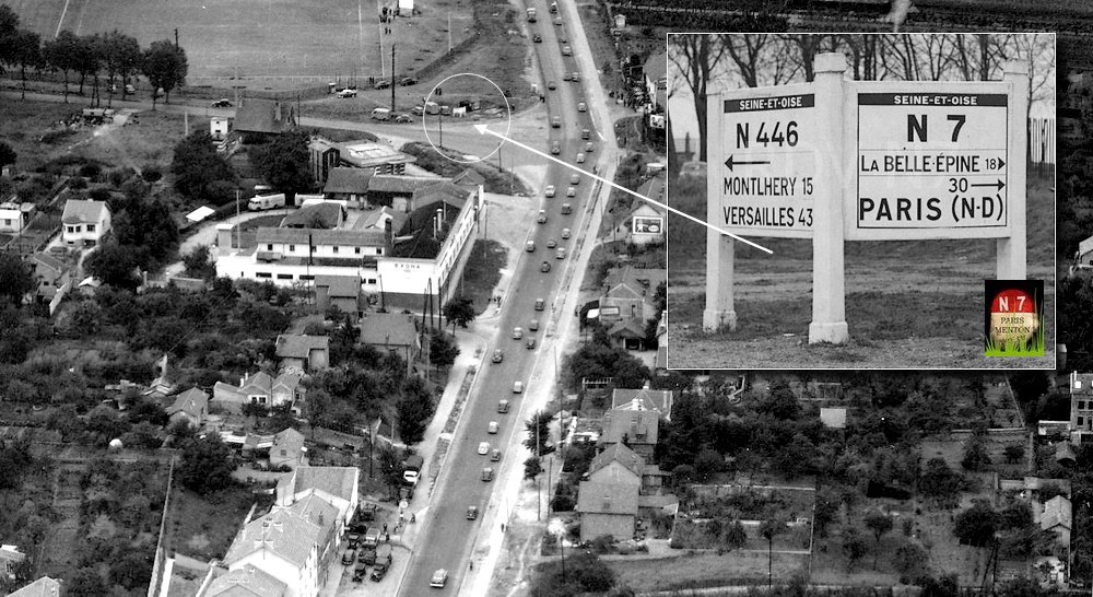Rare vue du carrefour Exona prise en direction d'Evry en 1953.
