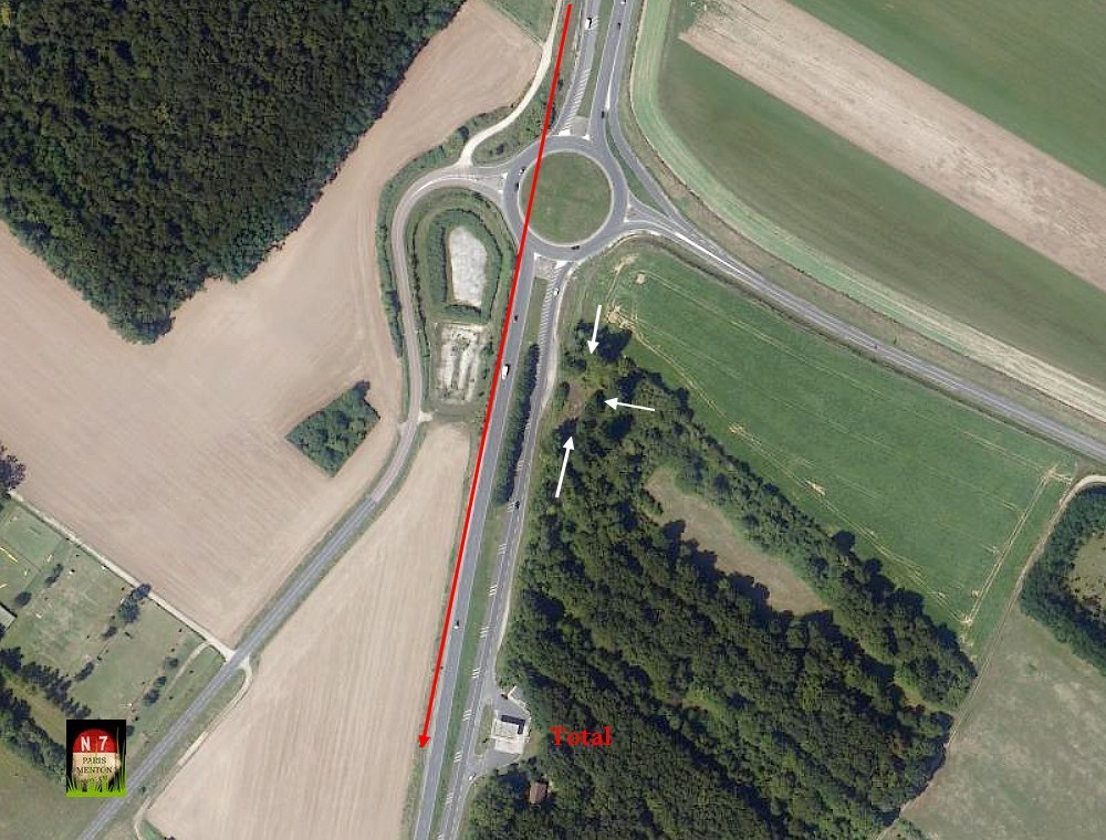 Juste après le rond point, sur le terre-plein entre les voies