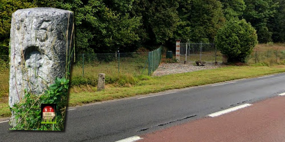 Sur la gauche, à la sortie du hameau, la borne milliaire 42 nous